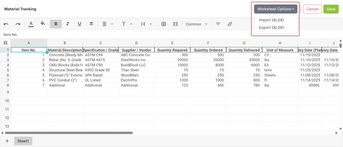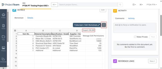 ProjectTeam makes it easy to extract and use worksheet information outside the platform through its Export feature. This tool allows users to download worksheet data into an Excel file, enabling further analysis, reporting, or data sharing as needed.