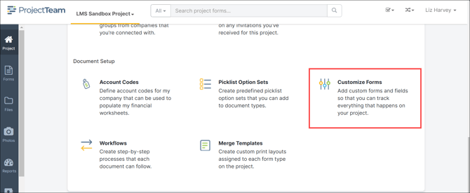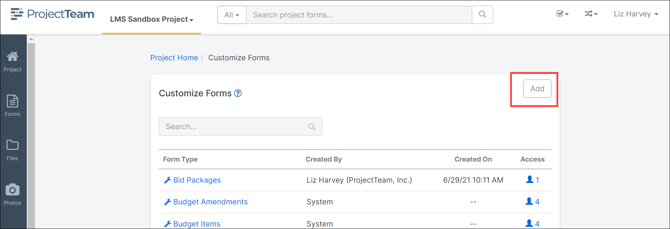 Note: To add a custom form at the project level, you must be a Project Administrator.