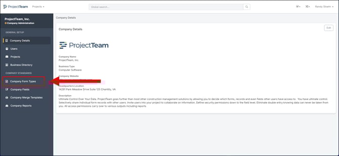 Note: To add a custom form at the company level, you must be a Company Administrator.
