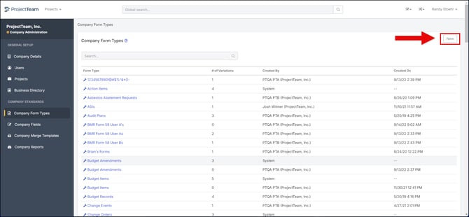 - In the list of existing Company Form Types, click the New button to create a new custom Company Form Type.