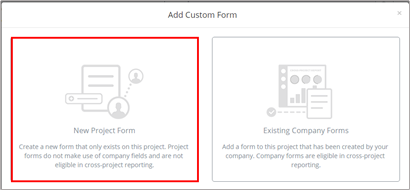 - In the "Add Custom Form" modal, select the New Project Form option to create a new custom form.