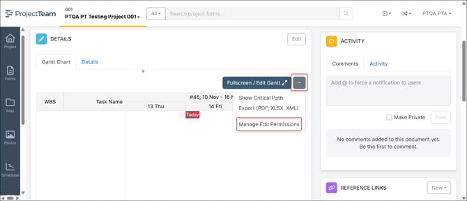 Learn how to grant edit (Read/Write) permissions to Gantt schedules in ProjectTeam.com. Only the creator of each schedule can define who has the ability to update tasks, dates, and dependencies, ensuring full control over project schedule changes.